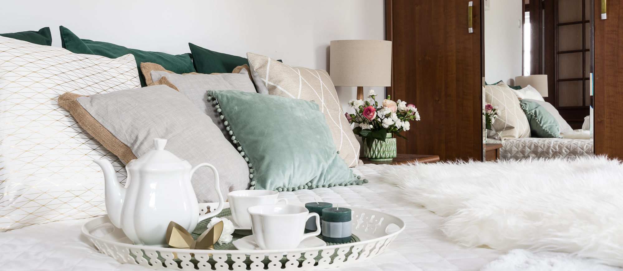 Nie można również zapomnieć o SYPIALNI. Elementy takie jak koce, poduszki, narzuty, książki są dodatkowymi elementami dekoracyjnymi oraz dają poczucie ciepła i bezpieczeństwa. Warto skorzystać z ich atutów ale również nleży zachować harmonię kolorów i faktur, wielkości i ilości. Staramy się nieprzesadzić z ich ilością i kolorem. Również jest to pomieszczenie które należy sprzącnąć. Jeśli decydujemy się na zasłony lub firany musimy pamiętać o ich należytym wyprasowaniu.